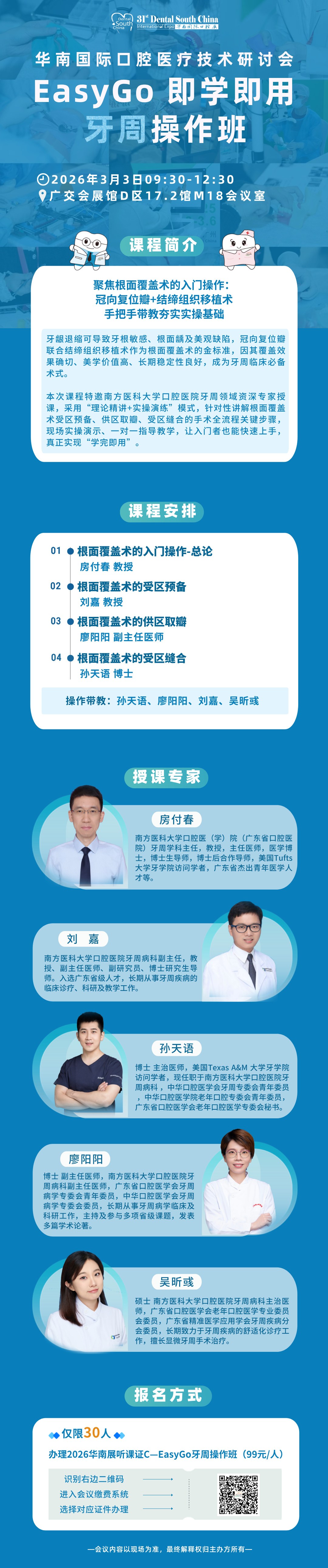 即学即用根面覆盖术!EasyGo牙周操作班报名开启:限30名