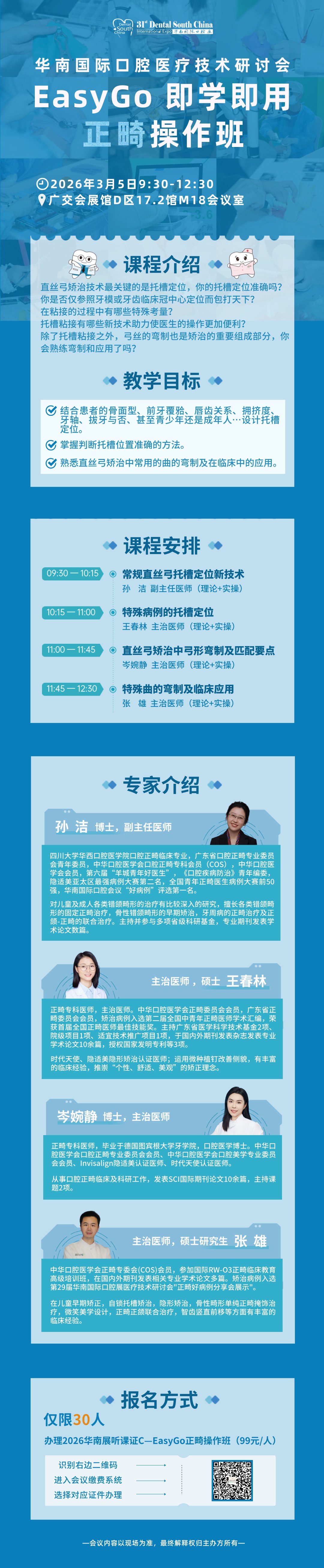 即学即用精准托槽定位及弓丝弯制!EasyGo正畸操作班报名开启